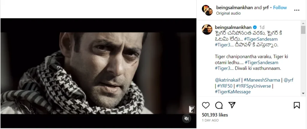 The teaser has already set social media abuzz, with fans expressing their eagerness and anticipation for the film. ‘Tiger 3’ is poised to be a box office smash, carrying forward the ‘Tiger’ franchise’s legacy as a thrilling, action-packed series that keeps audiences yearning for more.